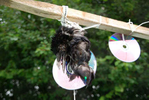 aufgehängt zur Abschreckung für andere Krähen...
